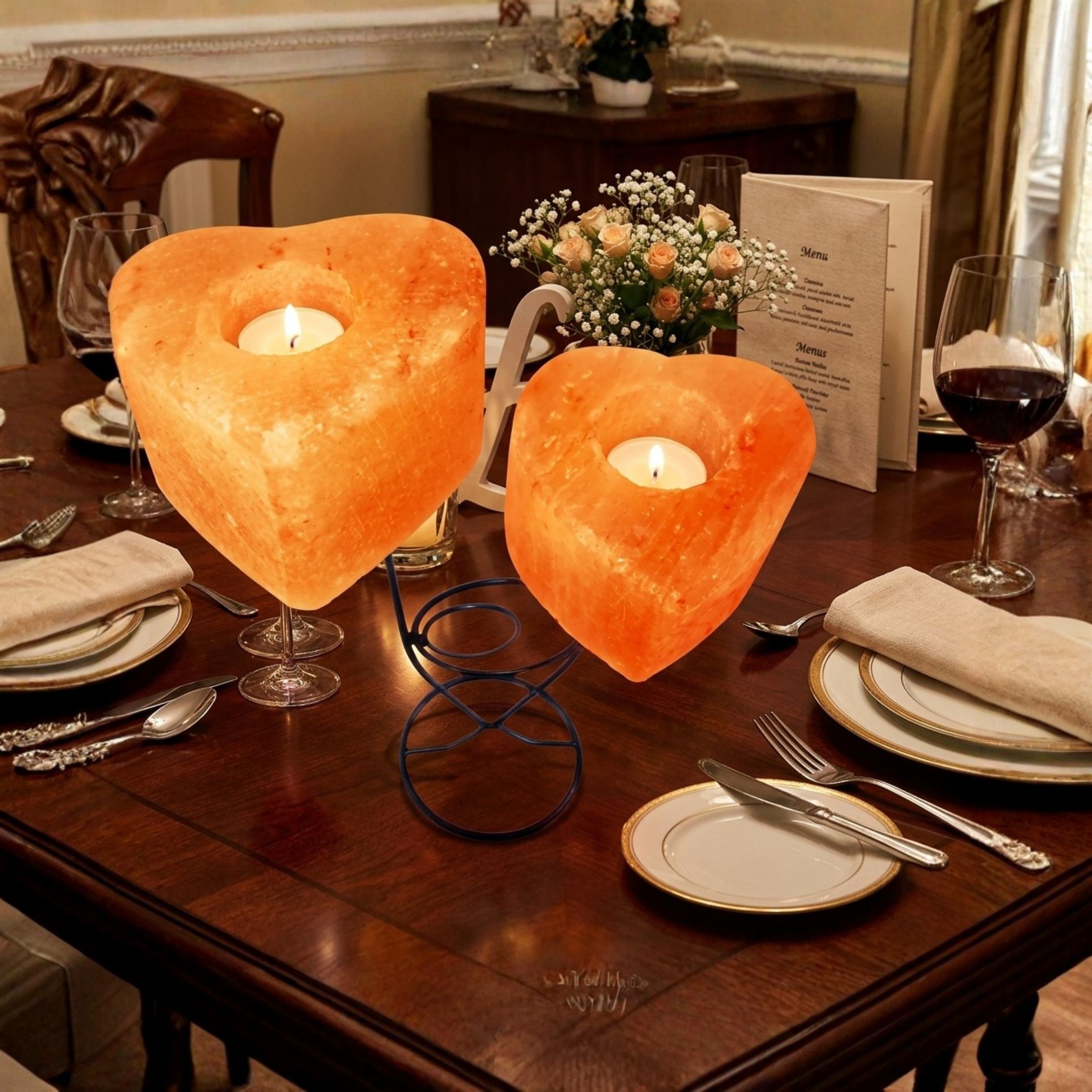 Enhance your home atmosphere with this Heart Shape Candle Holder with Metal Stand (Pack of 2), handcrafted from 100% natural Himalayan salt crystal.