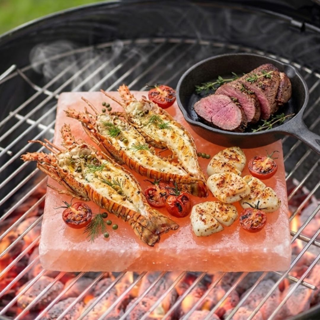 This natural salt plate combines functionality with a premium aesthetic, making it both a cooking tool and a serving centerpiece.