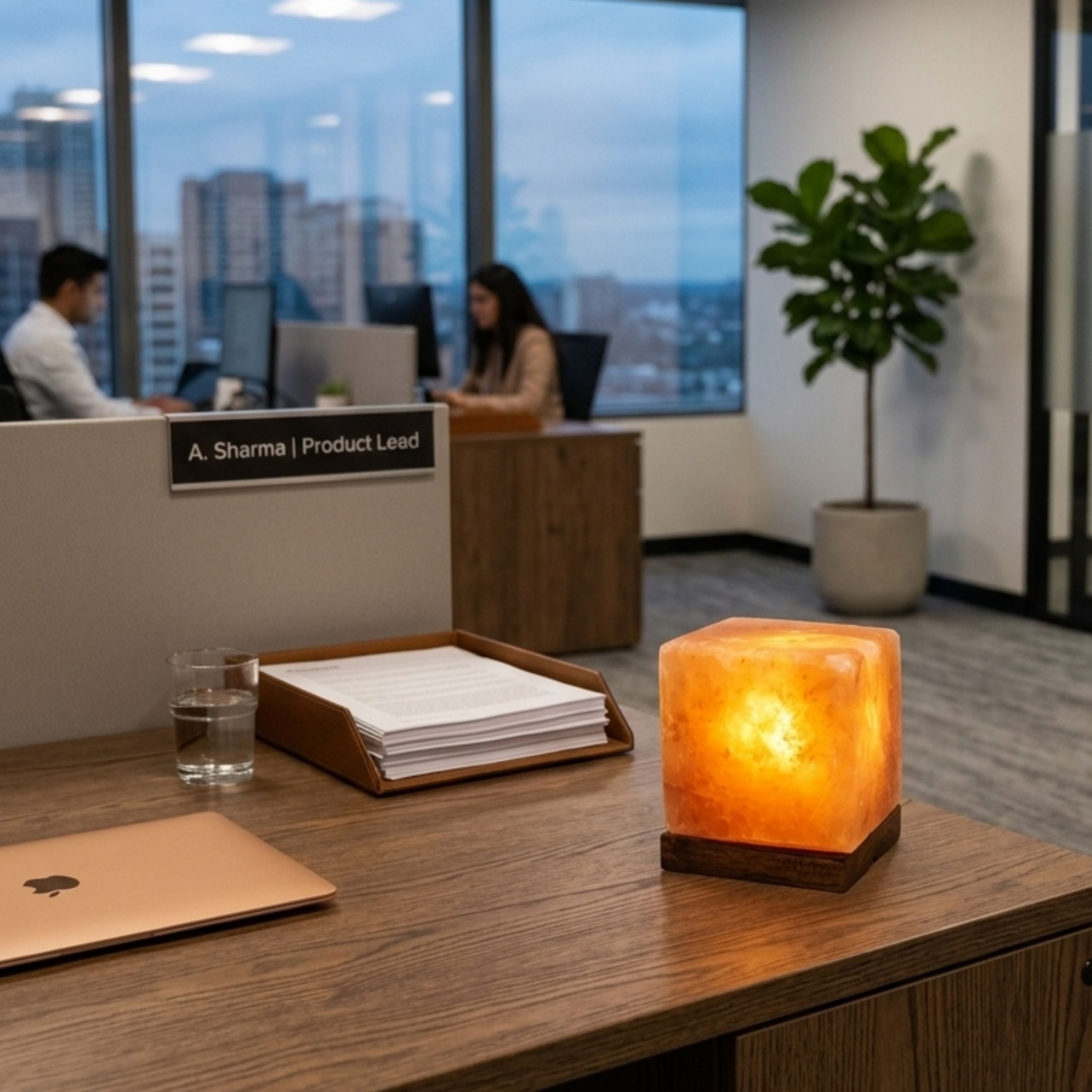 When illuminated with a 15-watt bulb, the lamp produces a soft amber glow that promotes relaxation, reduces stress, and enhances room ambiance. It is widely used in bedrooms, offices, living rooms, meditation areas, yoga studios, spas, and hospitality spaces.