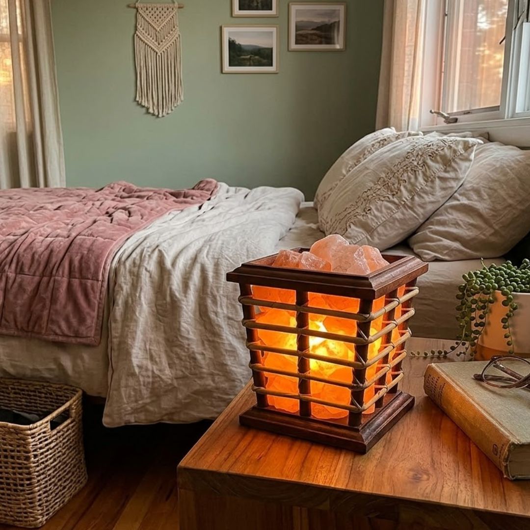 Each piece is individually handcrafted, ensuring slight variations in basket weaving and salt crystal shapes—making every lamp a one-of-a-kind décor statement.