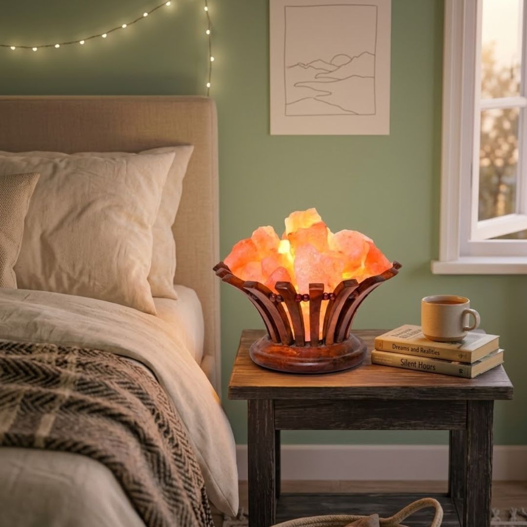Perfect for living rooms, bedrooms, cafés, spas, and wellness centers, this lamp adds both decorative sophistication and a calming atmosphere. Each piece is handcrafted, ensuring natural variations in woodwork and salt crystals, making every lamp truly one-of-a-kind.
